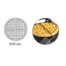 Для работы с замороженным и со свежеприготовленным тестом, вафли диаметром 185 мм и толщиной 26 мм, время приготовления 3 мин, темп. режим 300°С, ручка из нерж. стали, съемный поддон вокруг нижней рабочей поверхности.