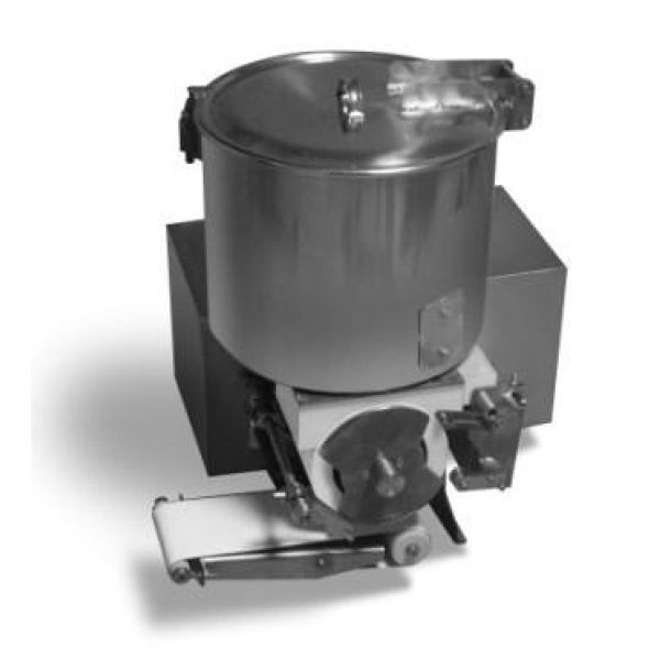 Настольный аппарат для формовки творожных изделий, форма круг 50 мм, высота продукта 20 мм, производительность 2000 штук/час, емкость бункера фарша 40 л, встроенный транспортер, возможность применения различных форм.