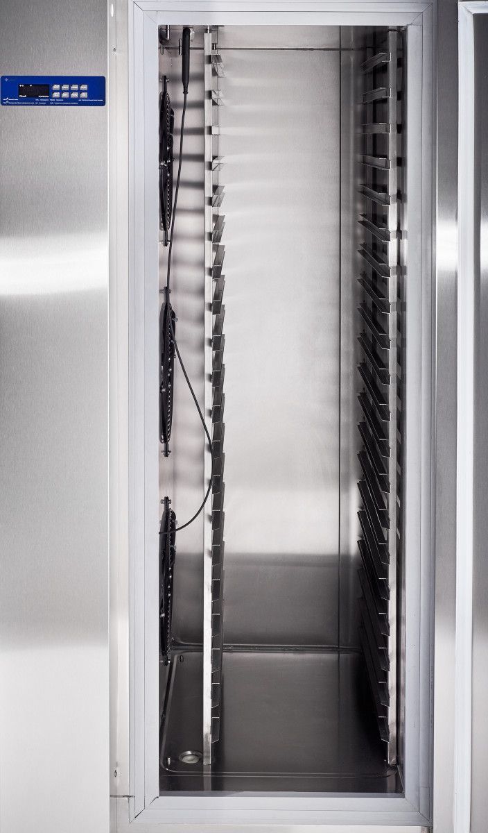 20 уровней, масса охлаждаемого/замораживаемого продукта 50/50 кг, тип противня GN 1/1 или 600х400 мм, темп. режим охлаждения/заморозки 90...3/90...-35С.