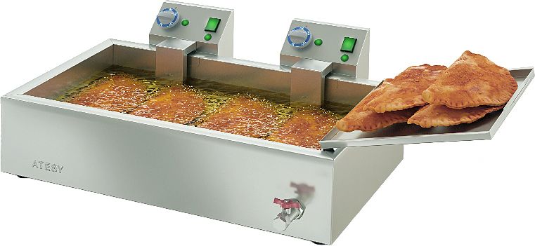 Производительность 36-40 шт/час, объем 14 л, время приготовления 6-7 мин, одновременное приготовление чебуреков в ванне 4, разогрев фритюра 25 мин, кран для слива масла, выполнена из нержавеющей стали.