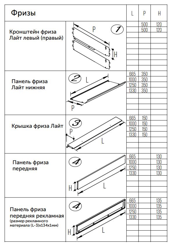 - Фриз "Лайт" - прямоугольная конструкция в виде коробки с плоской передней панелью для размещения рекламы и со специальной крышкой для установки светильника;