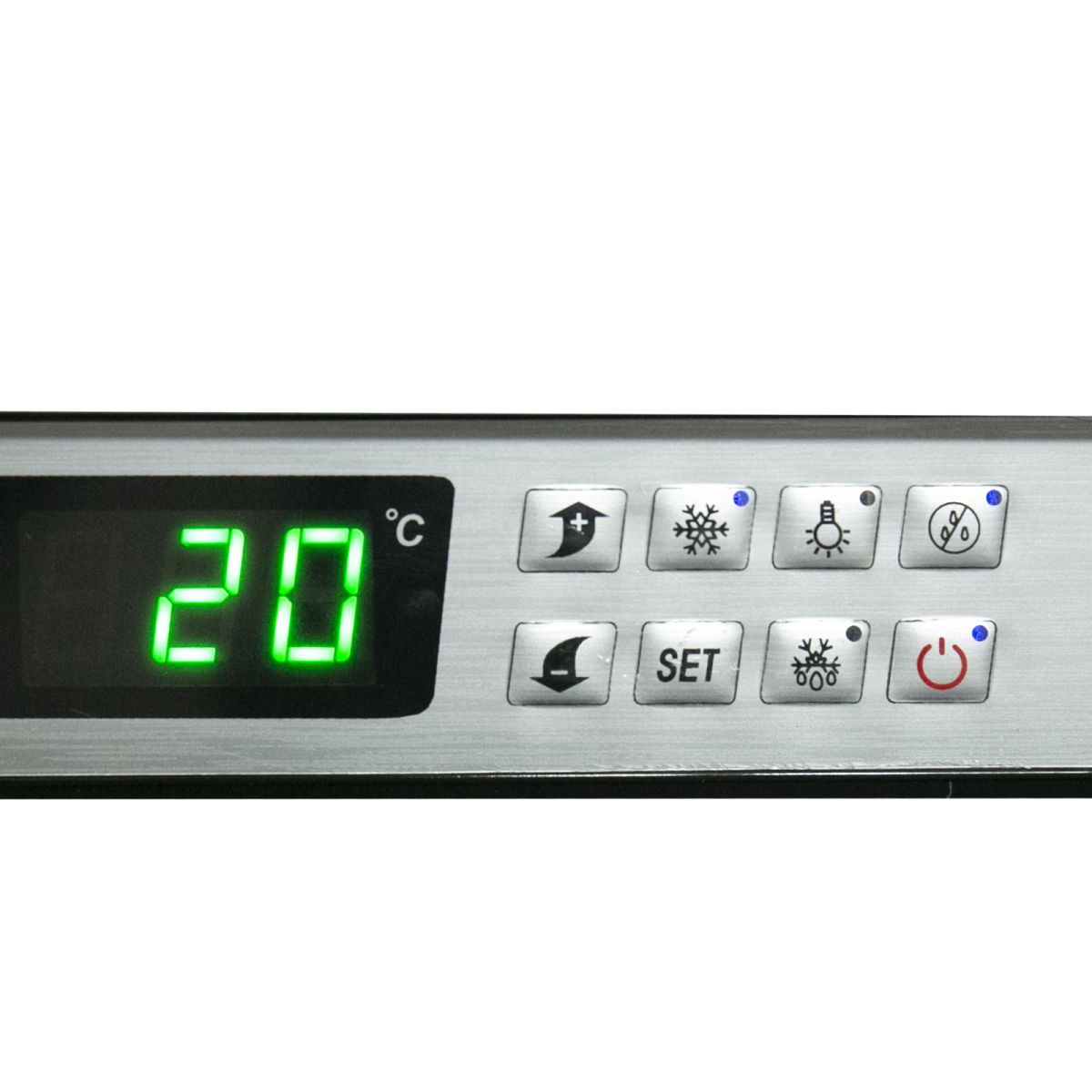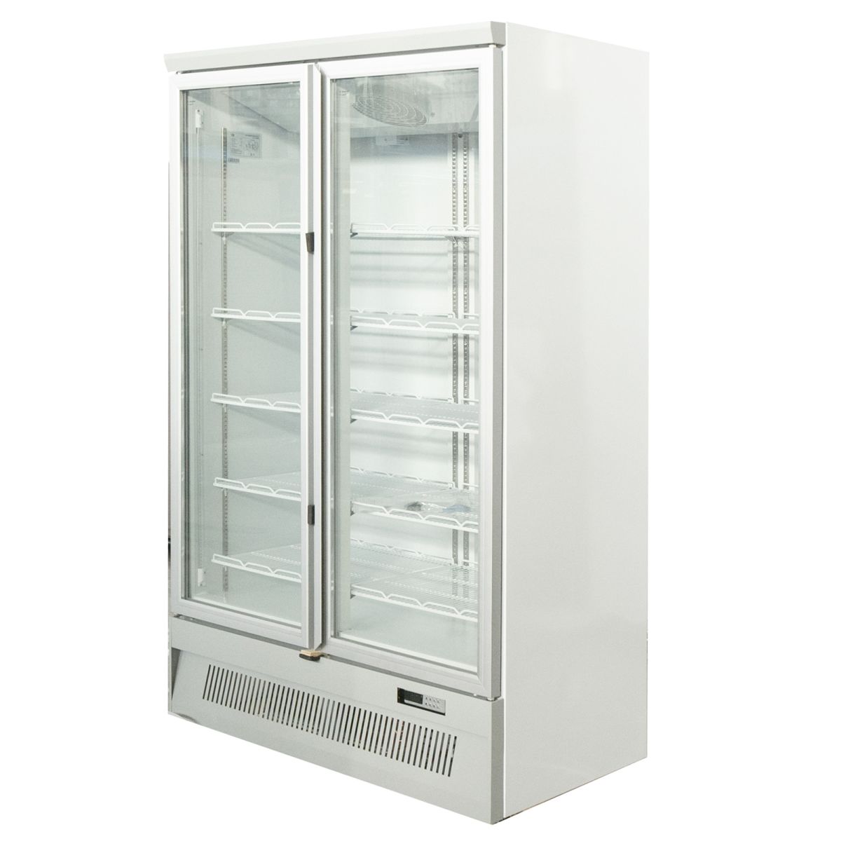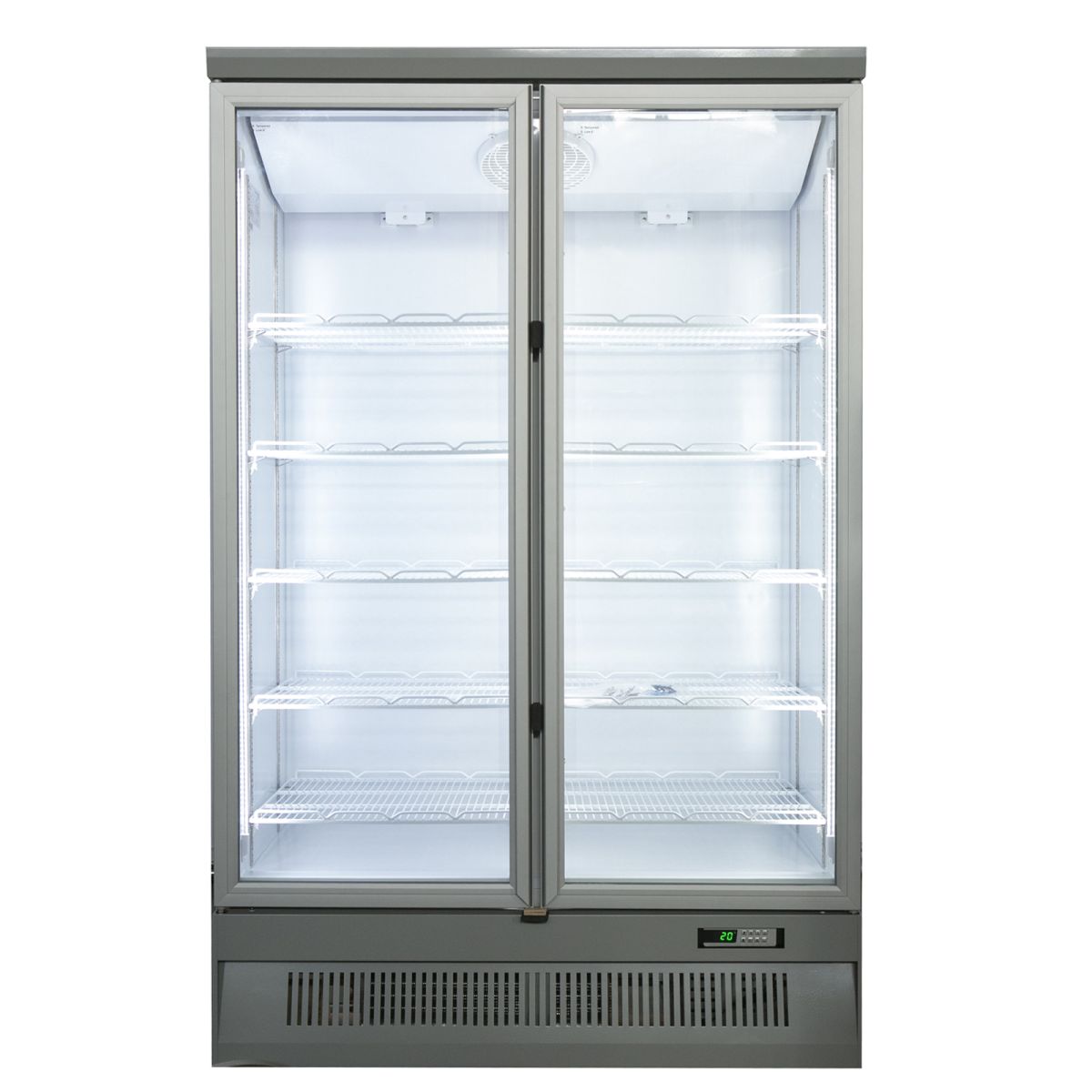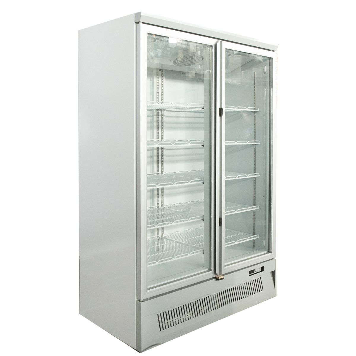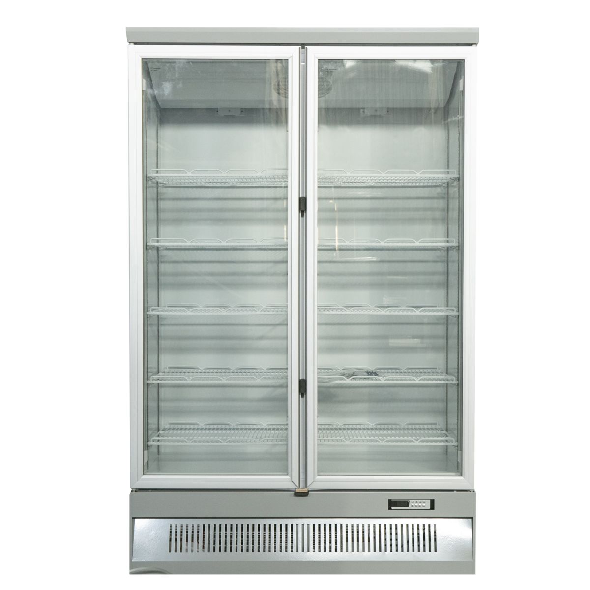 Объем общий/полезный 1000/874 л, хладагент R290, двойной стеклопакет, 2 ряда полок по 4 шт, подсветка, электронный термостат, температурный режим 0…+10°С.