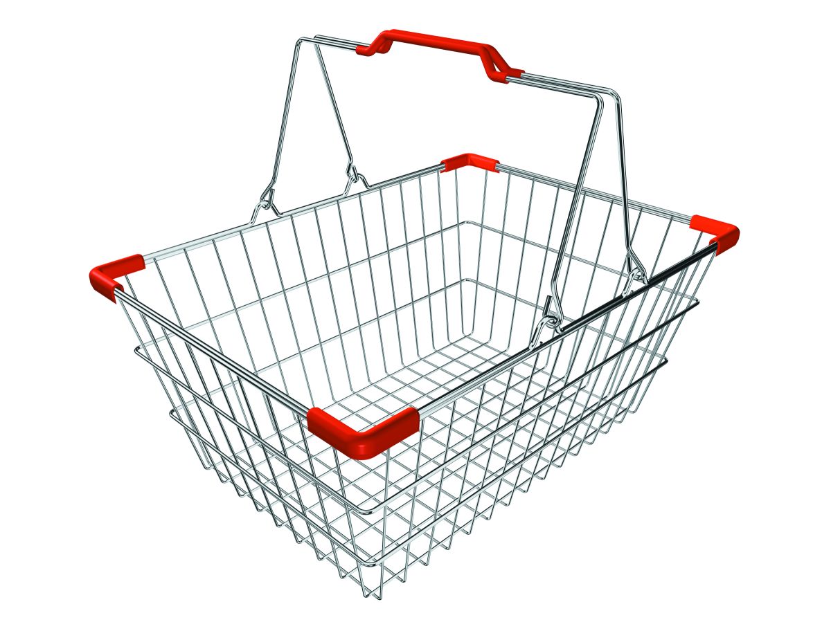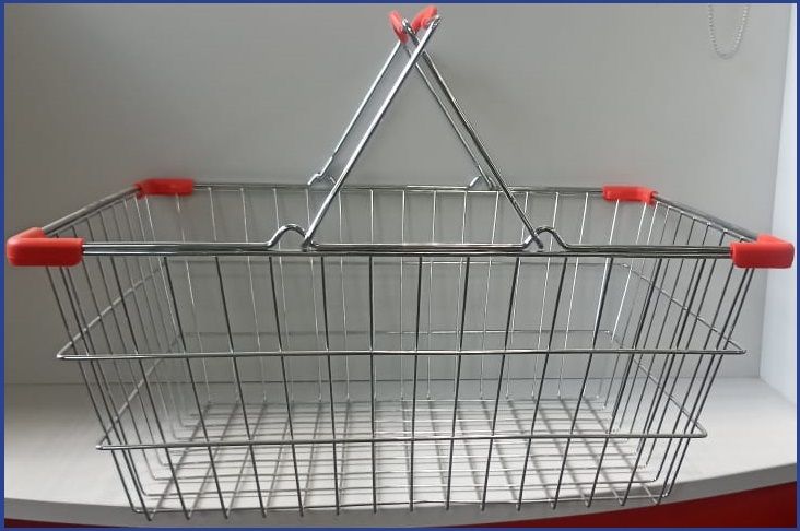 Читать все статьиКорзина покупательская хромированная SHOLS 22 литра, уголки красный пластик