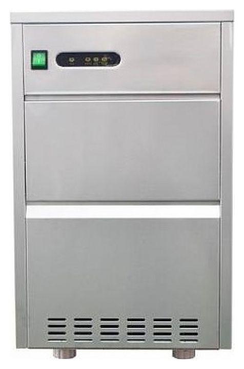 Проточного типа, воздушный тип охлаждения, вместимость бункера 5 кг, производительность 25 кг/сутки, форма льда пальчиковый.