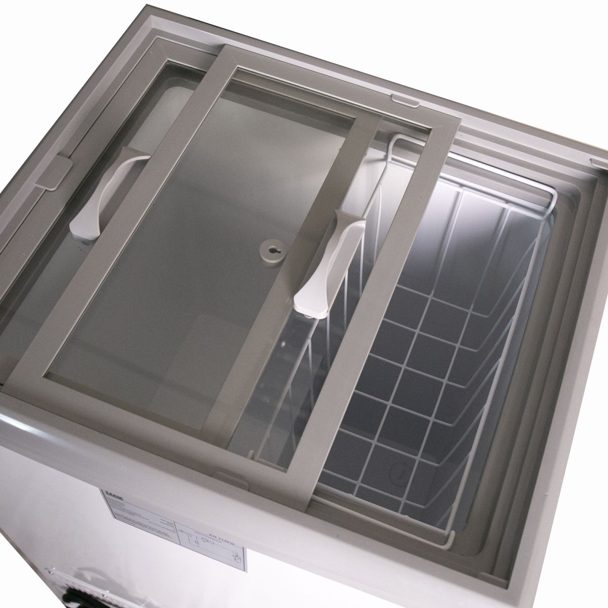 - Оборудована прозрачными стеклянными дверцами и корзиной в комплекте, имеет функцию суперзаморозки и длительный режим автономного сохранения холода;
