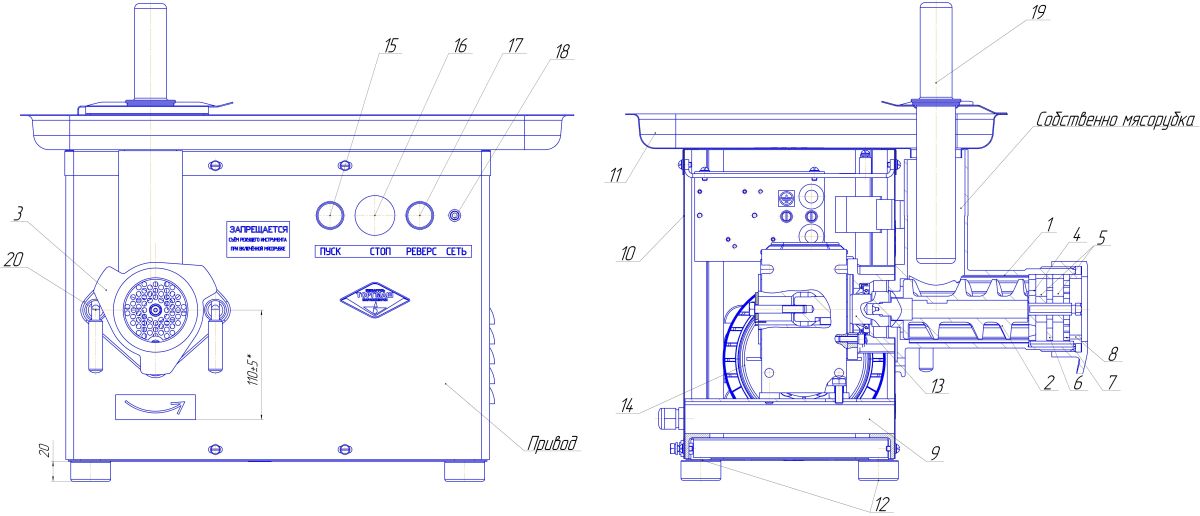 -Мясорубка предназначена для измельчения мяса и рыбы на фарш, повторного измельчения котлетной массы и набивки колбас на предприятиях общественного питания;