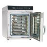 6 уровней, расстояние между уровнями 65 мм, тип гастроемкости GN 2/3, температурный режим 270 °С, 5 режимов работы, память на 110 собственных программ приготовления (до 4 этапов приготовления в каждой), бойлерное парообразование, термощуп, 1 вентилятор с функцией реверса, степень защиты камеры IPX5, таймер.
