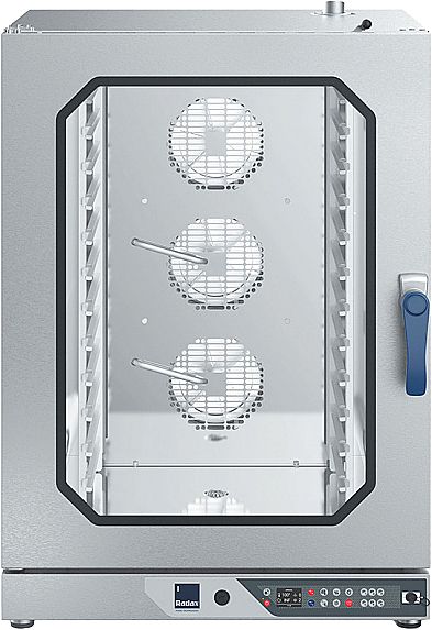 12 уровней, расстояние между уровнями 70 мм, тип направляющих GN 1/1, максимальная температура 270°C, инжекторное парообразование, реверсивные вентиляторы (5 скоростей), автоматическое охлаждение, автоматическая мойка, автоматическая программа чистки в ночное время, автоматическая готовка (сохранение до 100 программ).