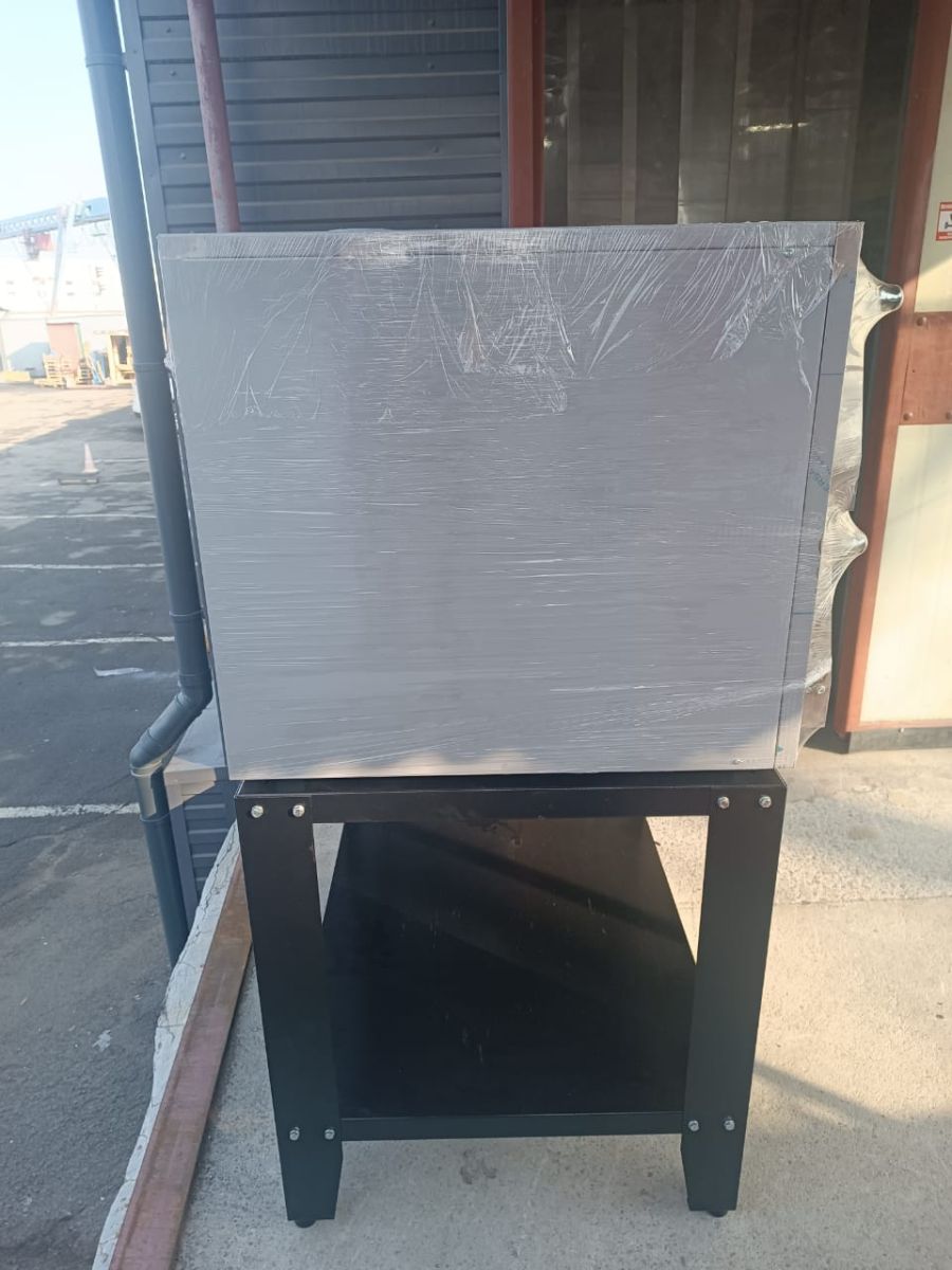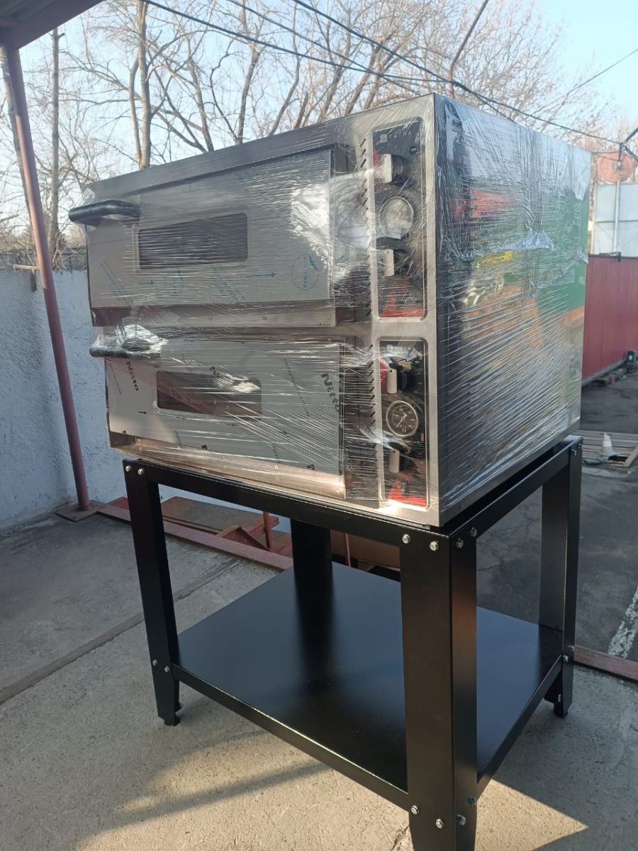 Шамотный камень толщиной 14 мм, камера из алюминизированной стали, дверь с окном, подсветка, термометр, электромеханическое управление, темп. режим 85-450С, 2 камеры 700х700х140 мм, макс. диаметр пиццы 350 мм, вместимость пиццы 4+4.