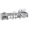 Плита имеет три горелки по 5,5 кВт и одну мощную горелку "двойная корона" - 7,5 кВт, устройство "газ-контроля", открытая разборная подставка, регулируемые по высоте ножки, 4 зоны нагрева.
