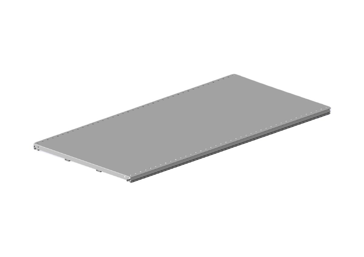 Длина 1220 мм, глубина 500 мм, грузоподъемность 80 кг, толщина стали 0,6 мм, одно ребро жесткости, цвет покрытия белый (RAL 9016).