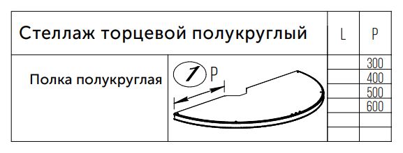 - Металлическая полукруглая полка для торцевого стеллажа;