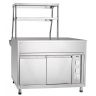 Линия раздачи Аста, 2 полки, 2 розетки на 16 А, LED-подсветка, направляющие без стыков, ейтральный шкаф для хранения, регулируемые по высоте ножки.