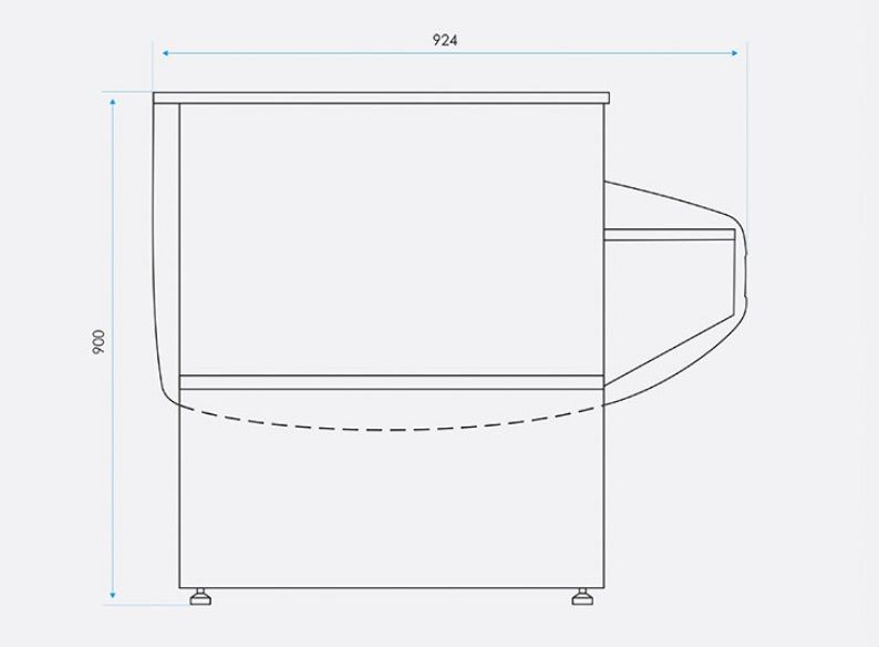 - Кассовый неохлаждаемый прилавок предназначен для работы продавца с покупателями, выполнен в едином стиле с охлаждаемыми витринами