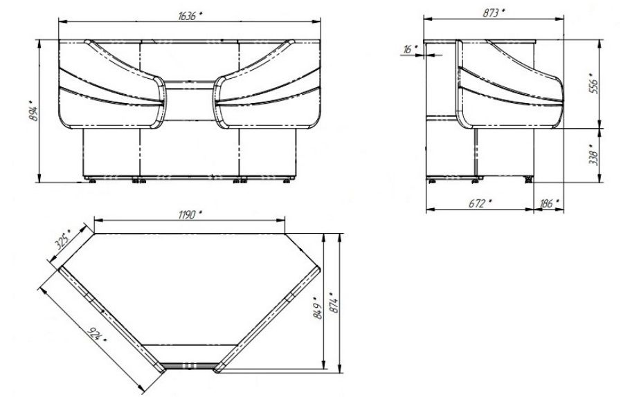 - Кассовый неохлаждаемый прилавок предназначен для работы продавца с покупателями, выполнен в едином стиле с охлаждаемыми витринами;