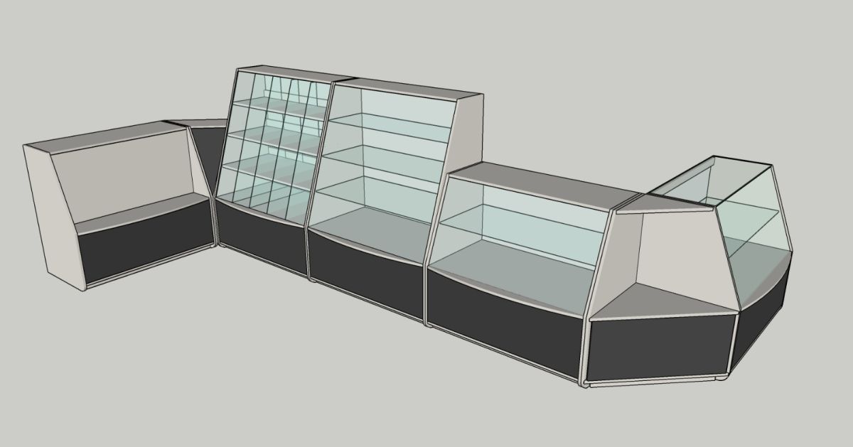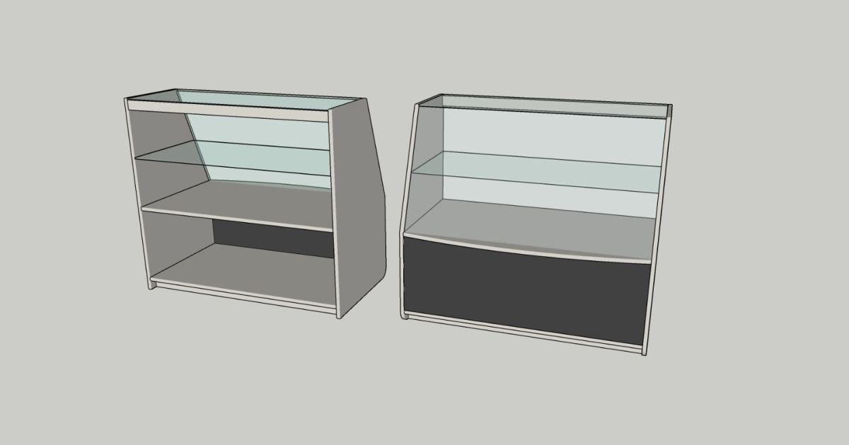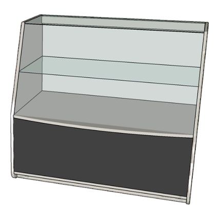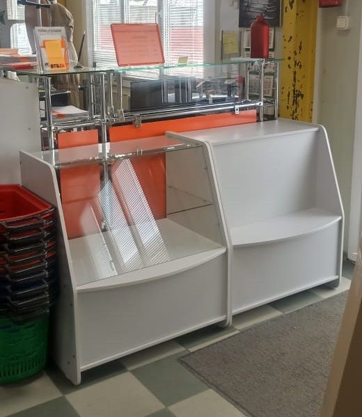 Прилавок из ЛДСП толщиной 16 мм и стекла толщиной 4-5 мм, одна стеклянная полка.