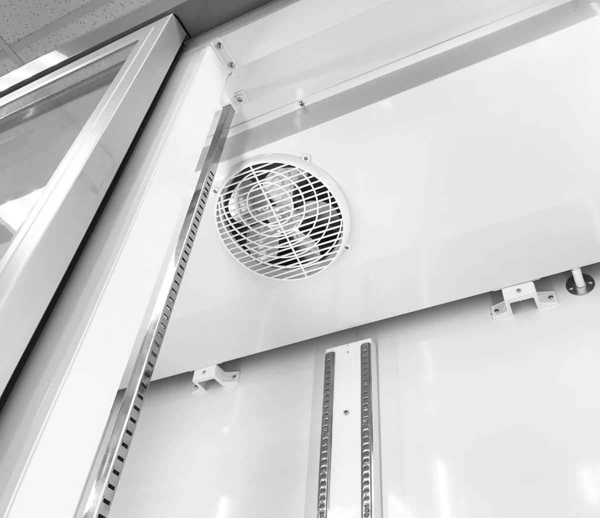 - Оснащен дверями с двойным стеклопакетом и профессиональной системой двойного охлаждения по типу воздушного занавеса;