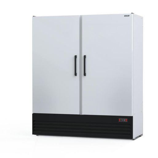 Хладагент R404a, объем 1400 л, динамическое охлаждение, автомтаическая оттайка, 8 полок, глухие распашные двери, температурный режим 0…+8°С.