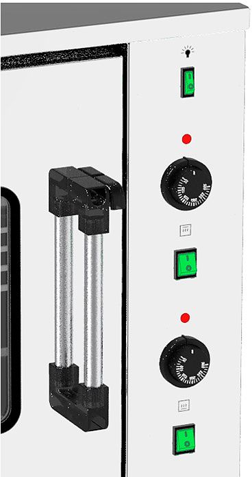 Количество камер (подов) 1, вместимость 4 х GN 2/1, количество уровней в одной камере 4, размер гастроемкости 650x530 мм, температурный режим от 50 до 300 °С, время разогрева 35 мин.