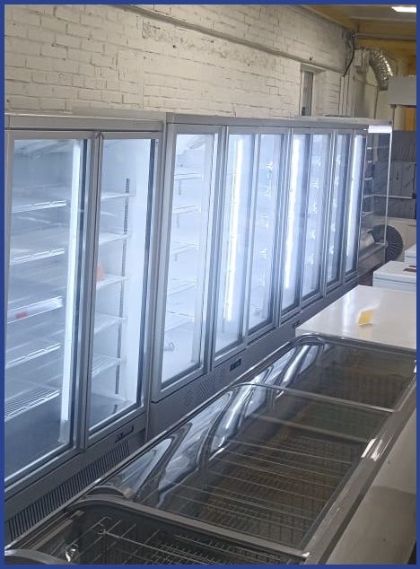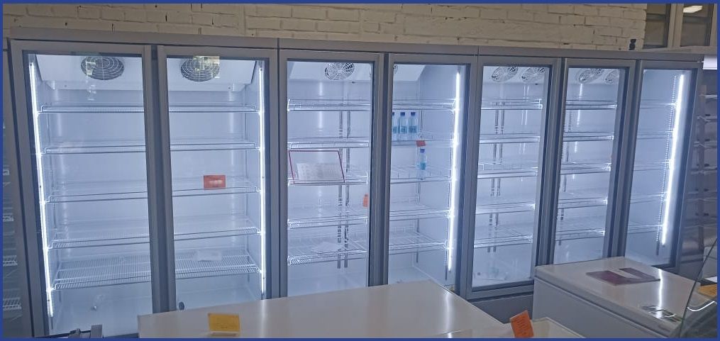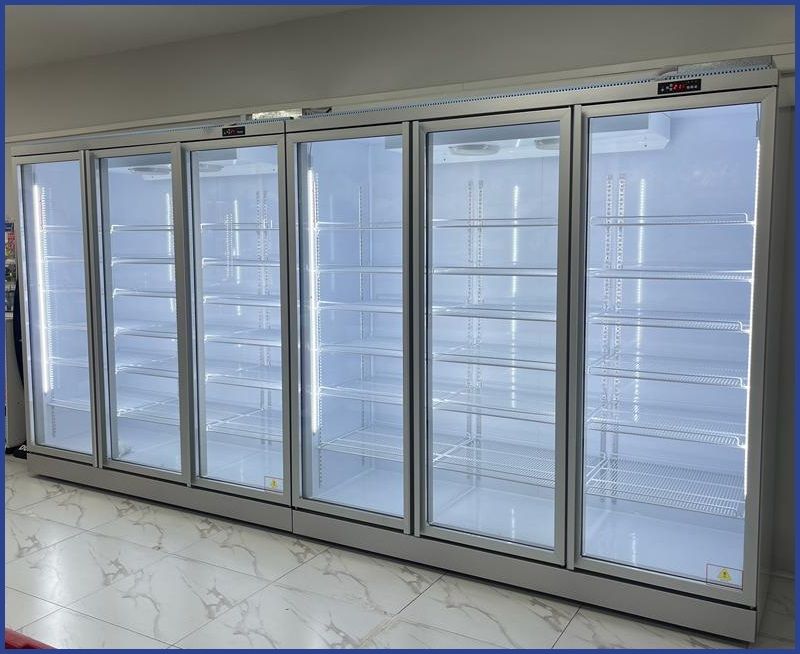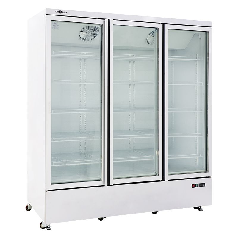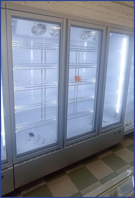 Хладагент R290, объем 1430 л, 15 полок 551,5х517 мм, нагрузка на полку 25 кг, LED подсветка, 3 стеклянные распашные двери, температурный режим 0…+10°С.