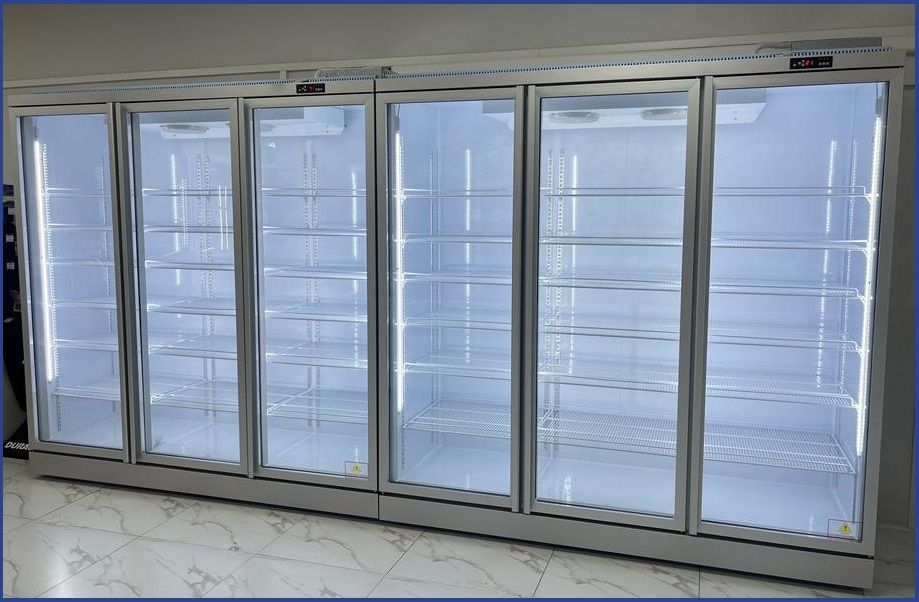 Хладагент R290, объем 1985 л, 15 полок 601,5х557 мм, нагрузка на полку 30 кг, LED подсветка, 3 стеклянные распашные двери, температурный режим 0…+10°С.