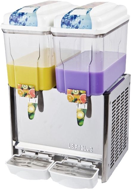 2 емкости, объем одной емкости 12 л, тип перемешивания гейзерный. Не подходит для напитков, содержащих мякоть.