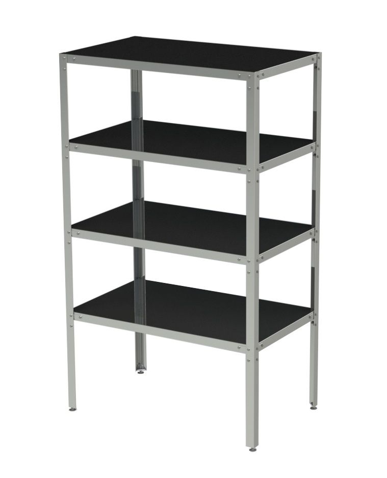 - Стойки стеллажа выполнены в виде уголка с фальцованными кромками для предотвращения травматизма персонала;
