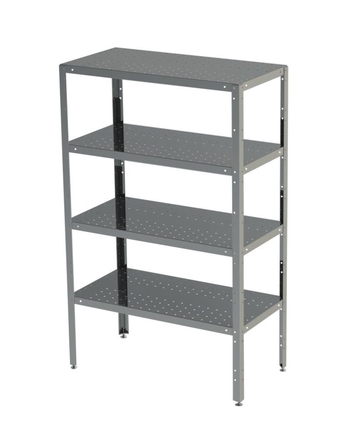 Стеллаж кухонный, разборный, стойки уголок нерж.сталь, полка перфорированная нерж.сталь, полка толщиной 40 мм с ребром жесткости, регулируемые опоры, нагрузка на одну полку не более 80 кг.