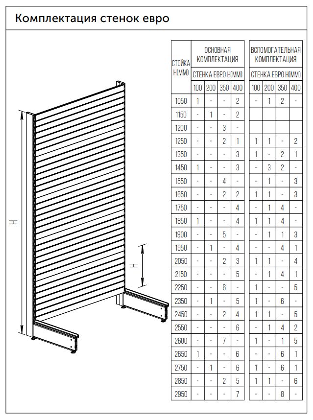 - В зависимости от высоты стойки подбирается размер и количество задних стенок;