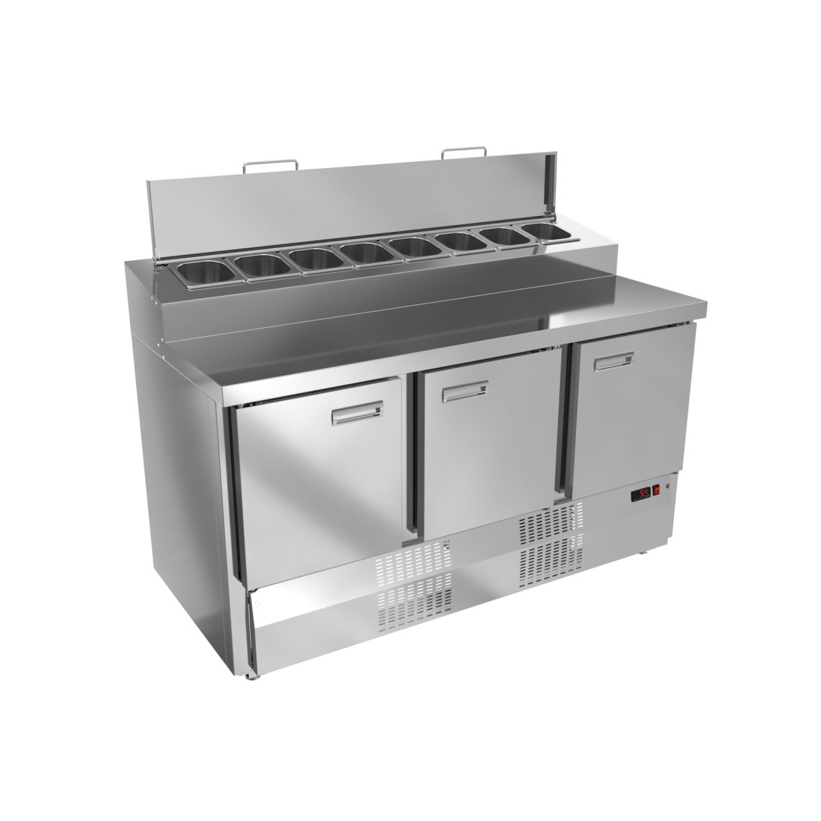 - Холодильный стол для пиццы предназначен для профессиональной кухни на предприятии общественного питания, в меню которого присутствуют пиццы;