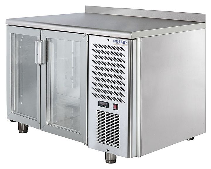 Боковое расположение агрегата, глубина стола 600 мм, температура +1...+10 °С, объем 270 л, столешница из нерж. стали толщиной 40 мм, 2 стеклянные двери, борт 60 мм.
