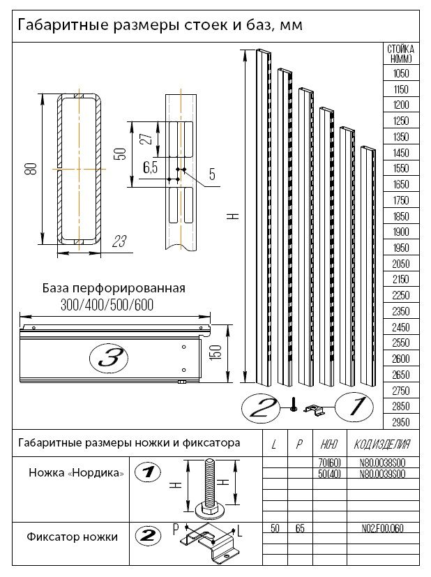 Сварная стойка, профиль 80х30 мм, шаг перфорации 50 мм, база 500 мм.