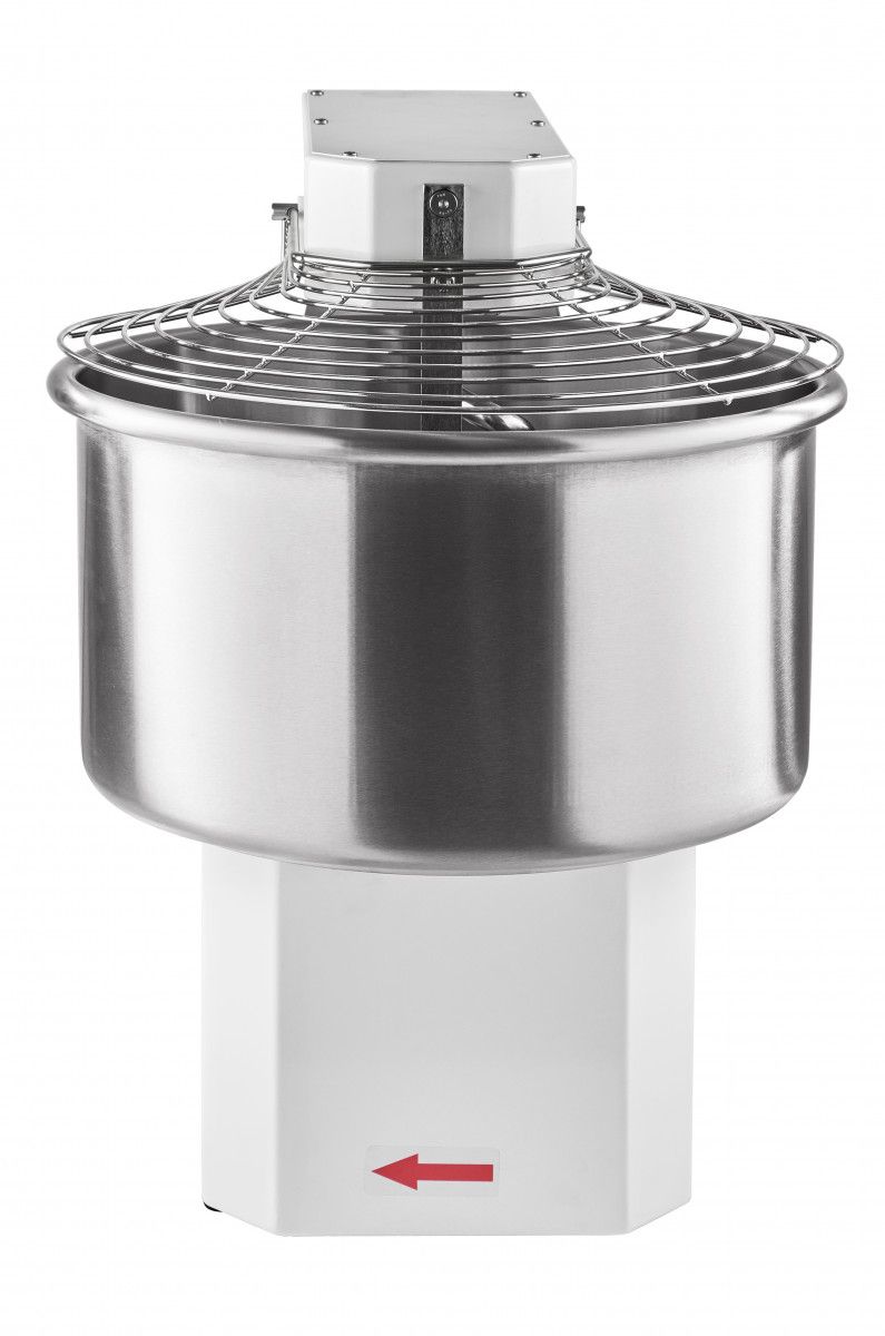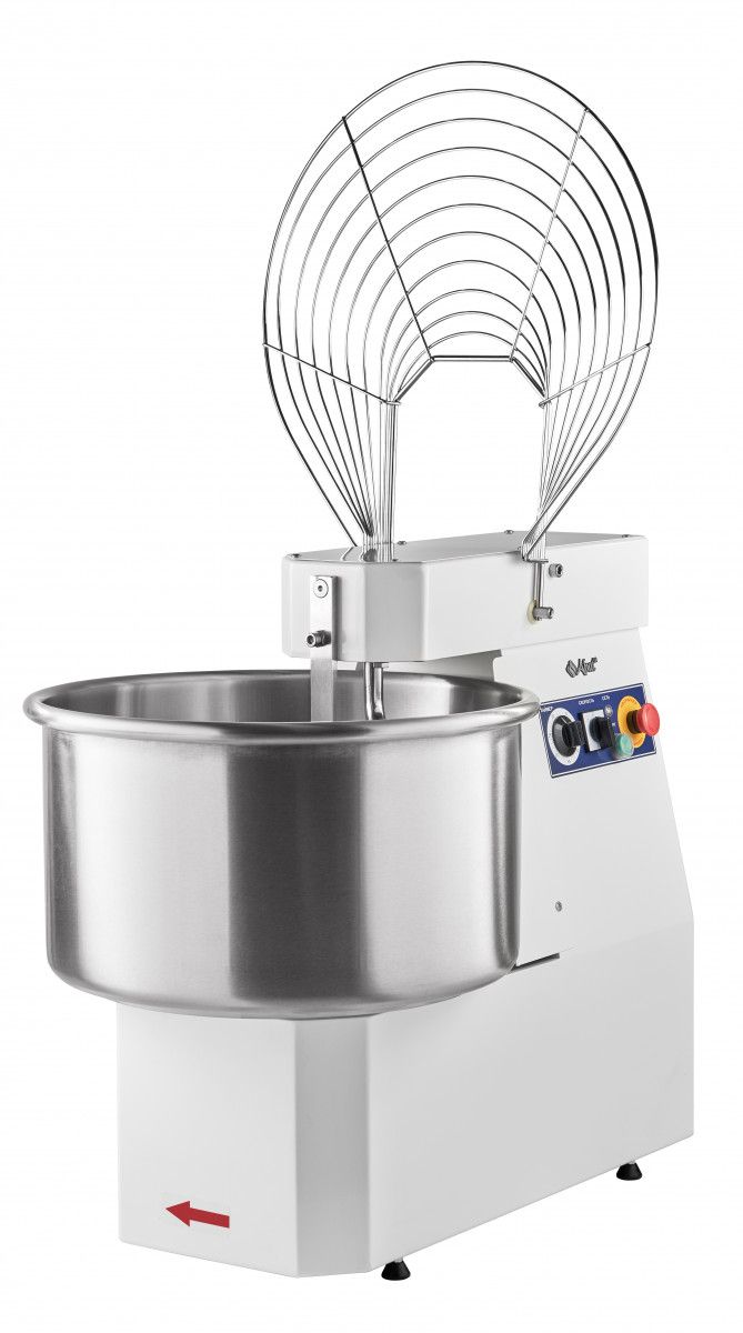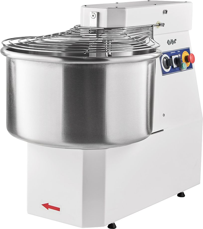 Несъемная дежа, фиксированная траверса, прямой нож, загрузка теста 25 кг, 2 скорости, таймер.