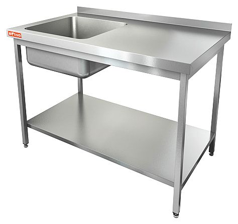Каркас из оцинкованного уголка, материал ванны нерж.сталь, рабочая поверхность справа, борт, сплошная полка, размеры раковины 500х500 мм, глубина раковины 300 мм.
