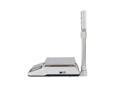 Двухсторонний ЖК дисплей с подсветкой, максимальный предел взвешивания 15 кг, дискретность от 2 до 5 гр, платформа 320х210 мм из пластика с дополнительной съемной накладкой из нержавеющей стали, уравновешивание тары, суммирование стоимости покупки, расчет сдачи.
